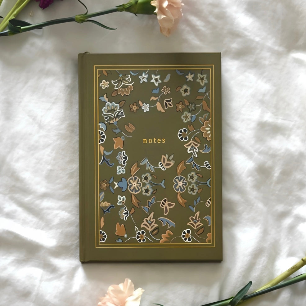 inspired by the beauty of the Rawdah in Masjid an-Nabawi, this hardcover lined journal is a heartfelt tribute to one of the most beloved places on earth. the cover features a fully hand-drawn design of the tranquil green, blue and orange patterns of the Rawdah carpet, a sight cherished by the hearts of many who have visited, and longed for by those who dream of doing so.